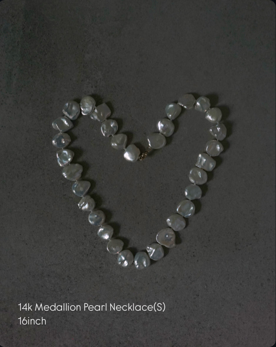 -14k Medallion Pearl Necklace(M)